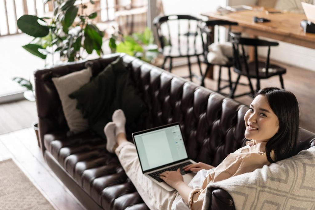 Schaffe, wenn möglich, eine physische Trennung: ein Schreibtisch, ein Paravent, sogar unterschiedliche Beleuchtung. So signalisiert dein Umfeld: Jetzt arbeite ich. Teile Fotos deiner Setups und inspiriere andere Remote‑Menschen.